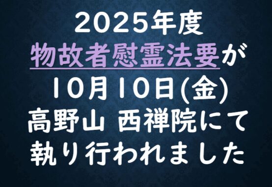 ■「2025年度 物故者慰霊法要」が 10月10日(金) 高野山 西…