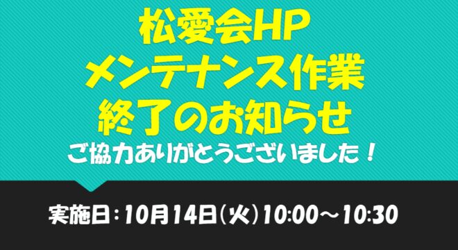 ★メンテナンス作業は終了しました!松愛会 本部支部 HPサーバーメンテナンス実施のお知らせ<10月14日(火)10:00~10:30>